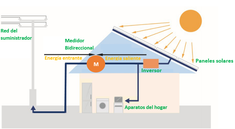Un sistema interconectado a la red que puede ser para tu hogar, negocio o empresa consiste en instalar el inversor conectándolo en el interruptor principal como si fuese un equipo común pero con la diferencia de que este inyectará la energía producida con los paneles a la red para que el medidor nuevo bidireccional (solicitada a CFE) que se instale monitoree lo que se esta consumiendo y generando en el inmueble; así, se sabrá cuanto pagarle a CFE el cual deberá ser un costo mucho menor que el que se pagaba anteriormente.